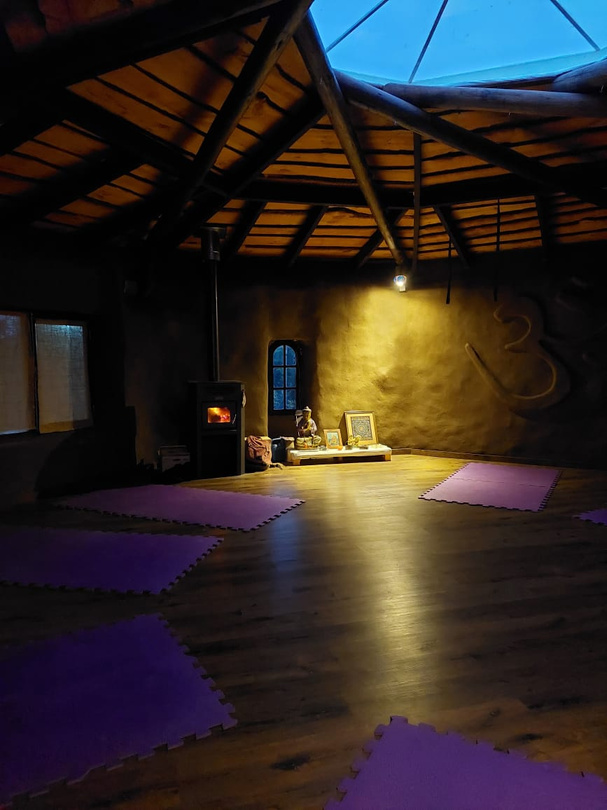 After traveling the world and absorbing ideas and techniques from different cultures that engraved in my mind, I started attending trainings, workshops, and collaborations. In 2019, I decided to get my hands in the clay again, embarking on this ambitious project: the construction of a nine-meter diameter octagon with reciprocal roof, a Yoga Shala, a Meditation Center, a DOME. Here, sacred geometry was manifested. This unique and fascinating structure became my greatest achievement to date. The desire to create a space for sustainable and environmentally friendly construction to share within the community started beating stronger and stronger.